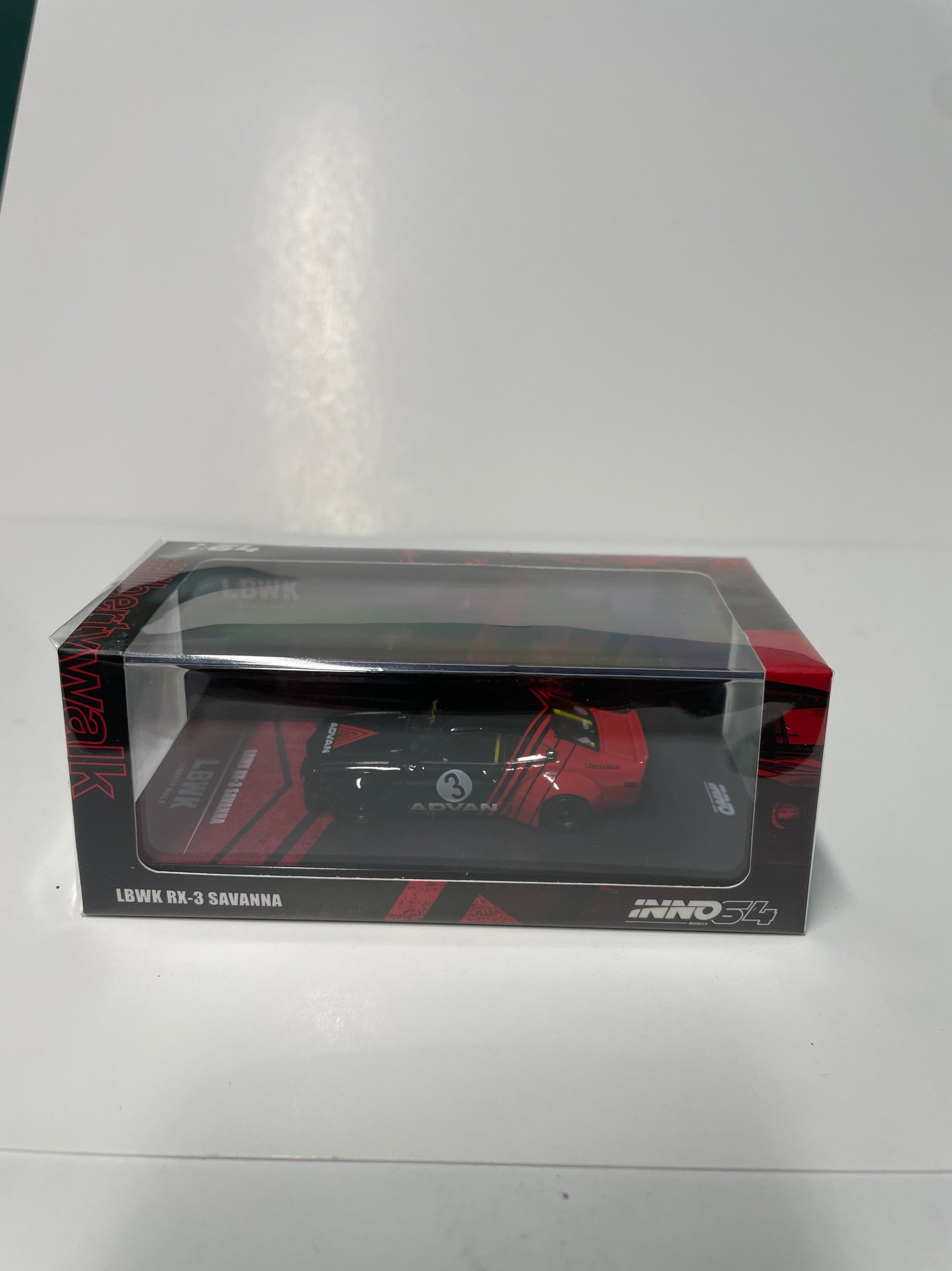 Inno64 1/64 LBWK Mazda RX-3 Savanna Advan Red & Black