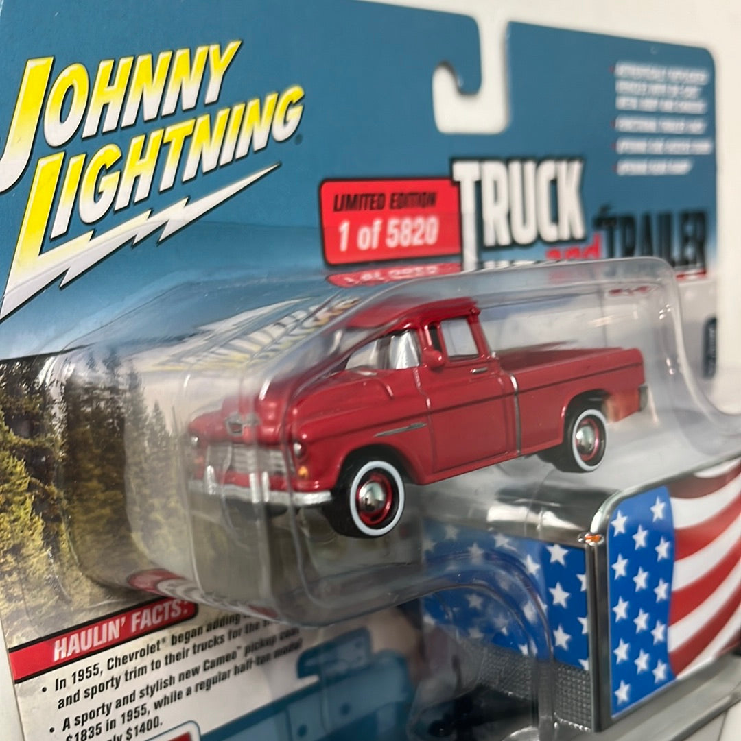 Johnny Lightning 1/64 Truck & Trailer 1955 Chevy Cameo w/ Enclosed Car Trailer
