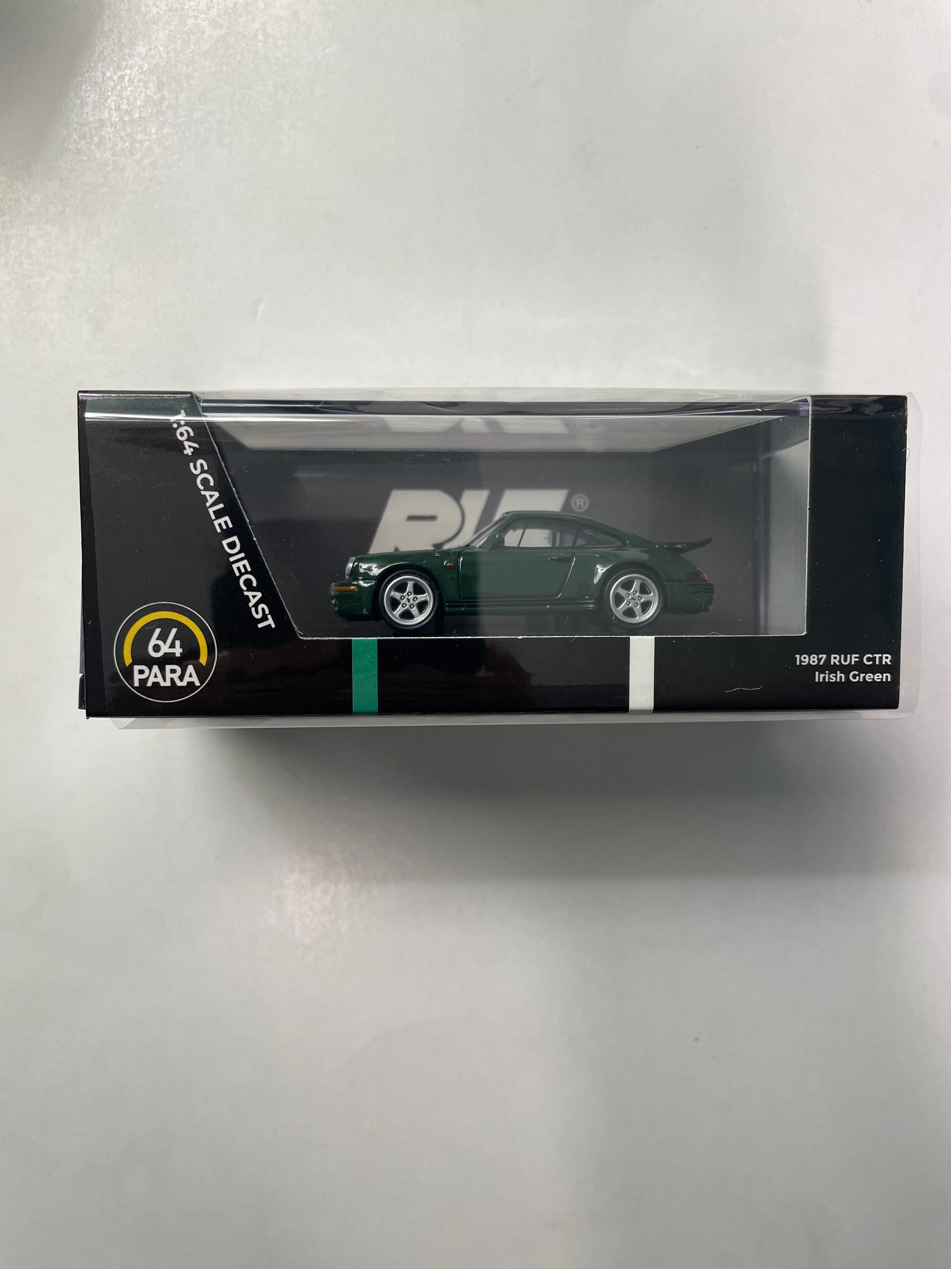 This is the 3rd release of PARA64's RUF CTR1 tooling in Guards Red and Irish Green, featuring free rolling wheels, detailed external decoration, separate parts for lights and presented in a clear plastic case.