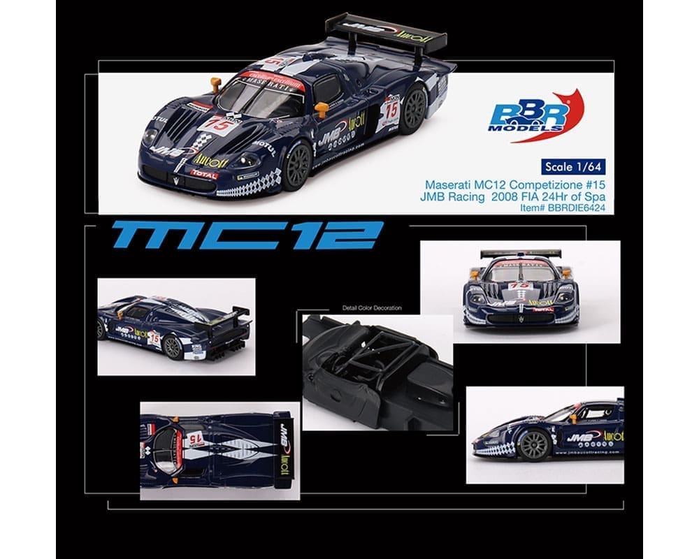 BBR Models 1/64 Maserati MC12 Competizione 2008 FIA 24Hr of Spa - JMB Racing #15 Blue