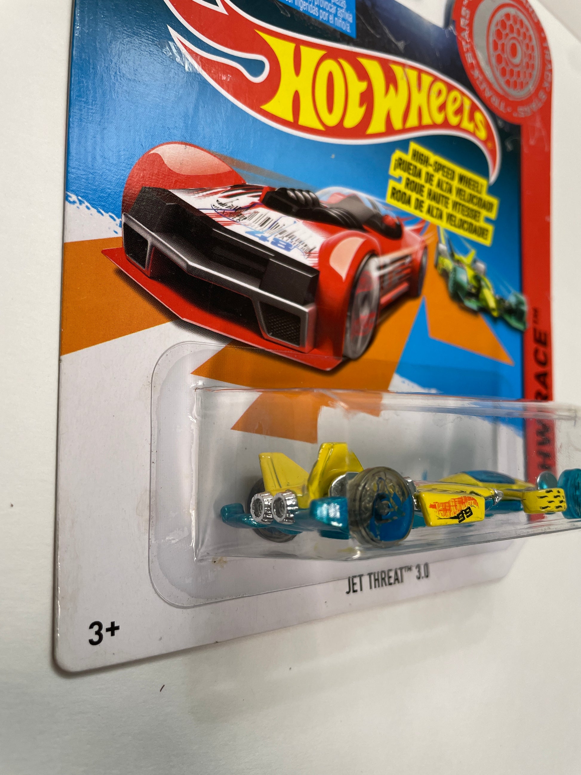 Hot Wheels 1/64 High Speed Wheels Track Stars Jet Threat 3.0 Yellow & Blue BDW21 - Damaged Box