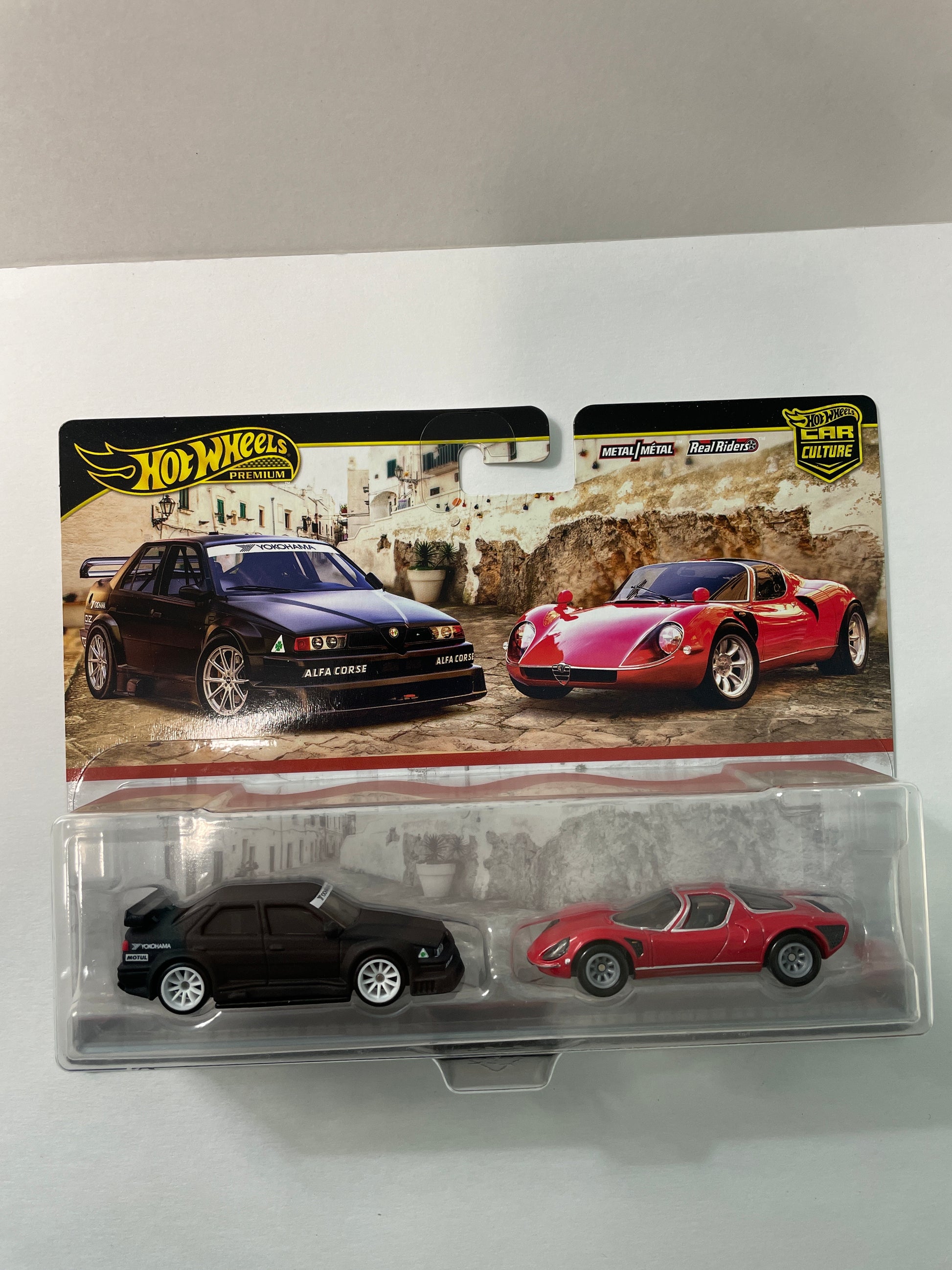 Hot Wheels 1/64 Premium Car Culture 2 Pack Alfa Romeo 155 V6 TI Black & '69 Alfa Romeo 33 Stradale Red - JBK95